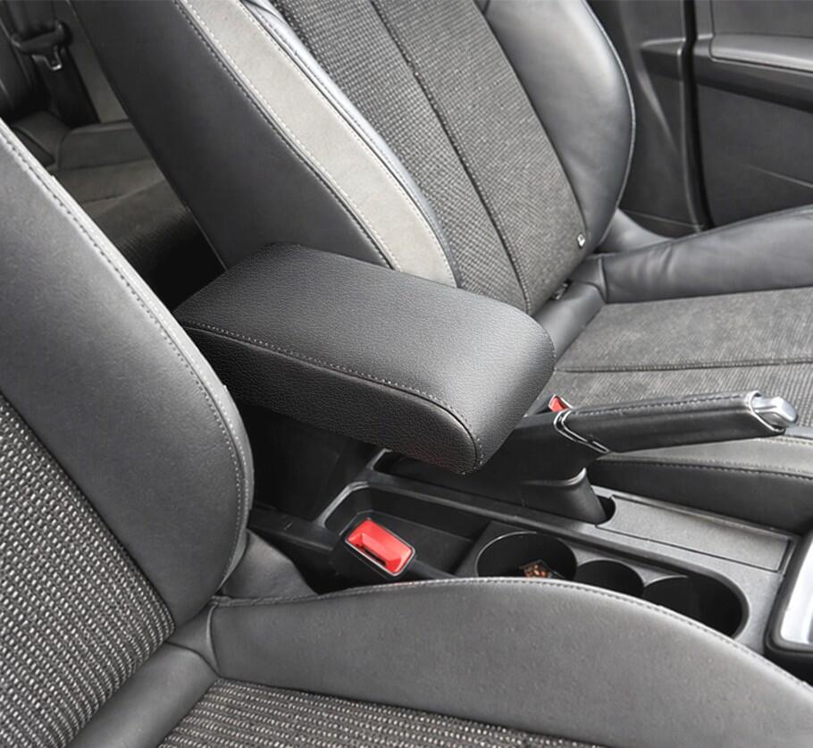 Adjustable in length armrest with large storage for AUDI A1 (2019>) II SERIES, is available in high quality eco leather, real leather, fabric and original Alcantara.
