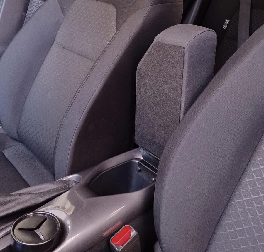 L'accoudoir permet d'accéder, en le soulevant, au grand porte-objet d'origine.