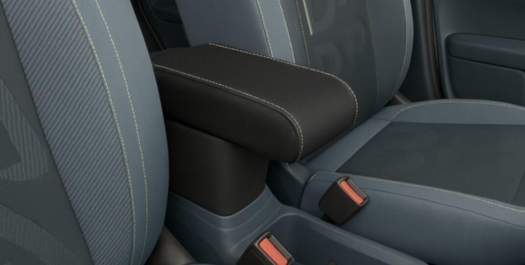 Il cuscino superiore è ampio, morbidamente imbottito ed è regolabile in lunghezza con un meccanismo a scorrimento orizzontale, per adattarsi alla postura del conducente. Sollevando il bracciolo superiore è possibile accedere a un capiente vano portaoggetti, completamente rivestito in feltro vellutato nero all’interno e in ecopelle all’esterno.